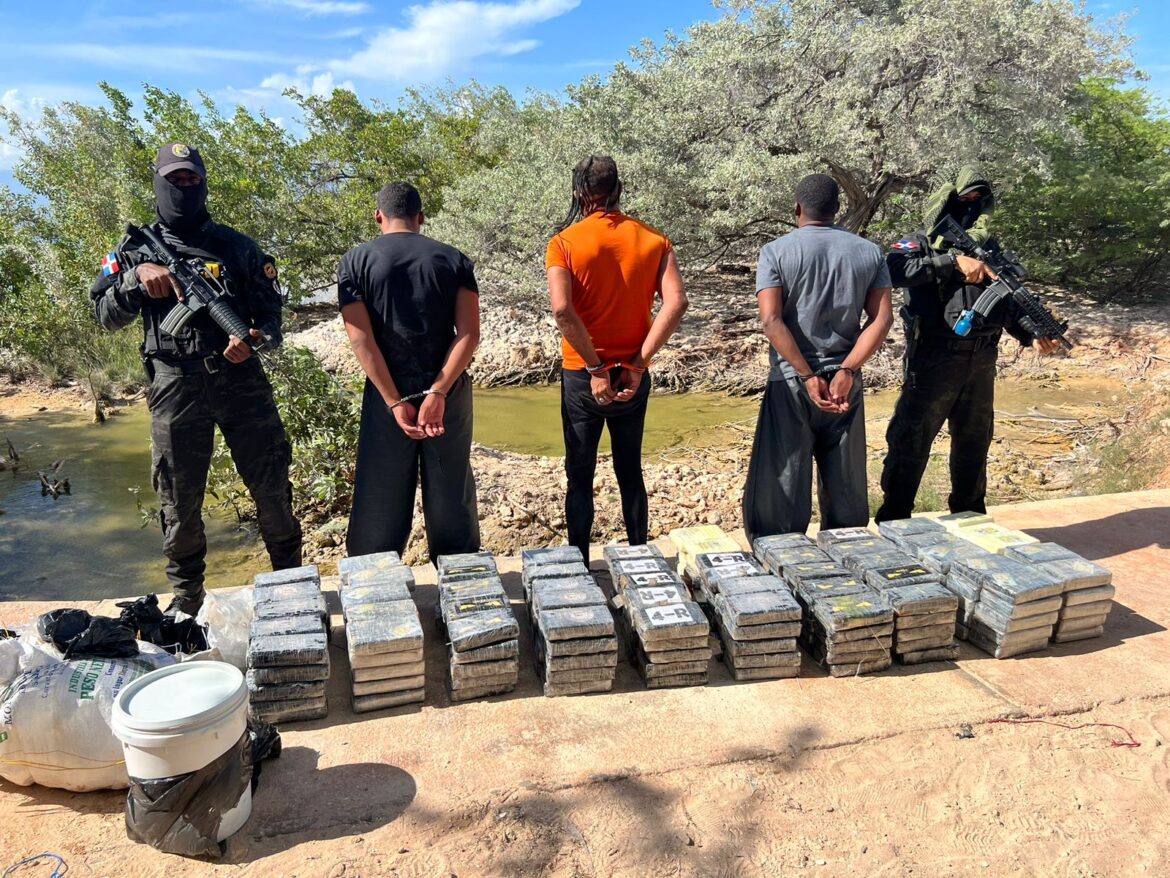 Al abordar la lancha, sin nombre ni matrícula, de unos 23 pies de eslora se arrestaron a tres dominicanos y se ocuparon en su interior cuatro pacas, y otras seis, fueron recuperadas de las aguas del mar Caribe, luego de ser lanzadas por los individuos cuando se percataron de la presencia de las autoridades.
