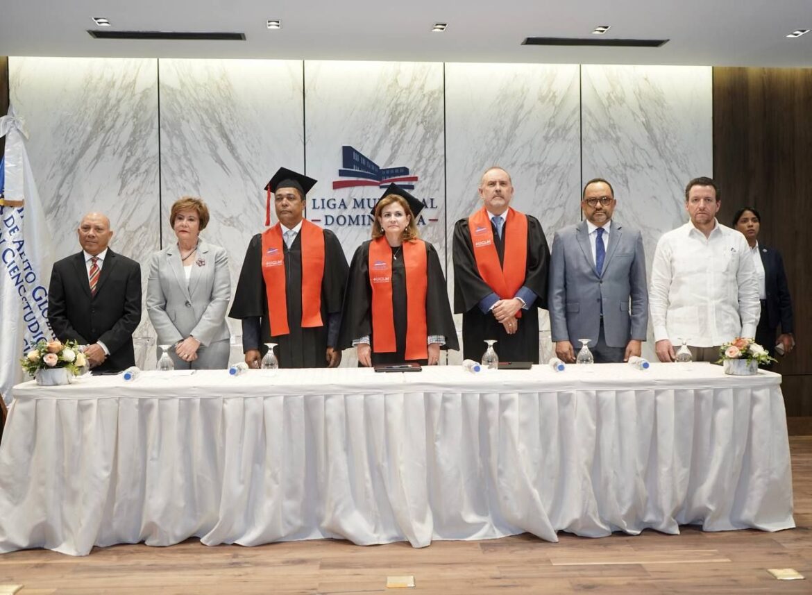 Santo Domingo.-La vicepresidenta de la República, Raquel Peña, encabezó junto al presidente de la Liga Municipal Dominicana (LMD), Víctor D’ Aza, el acto de graduación de 53 profesionales que cursaron la maestría en Derecho Administrativo y Gestión Municipal con la Universidad de Castilla La Mancha (UCLM) de España, así como de 30 técnicos municipales que completaron el Diplomado en Desarrollo Territorial y Urbano Sostenible con el Instituto Global de Altos Estudios en Ciencias Sociales (IGlobal).