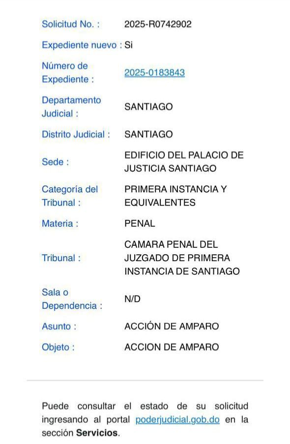 El segundo amparo, fue interpuesto en el caso del empresario Arnulfo Gutiérrez, por la retención unilateral y arbitraria del recurso de apelación interpuesto por el señor Ángel Ramón de Jesús Martínez, contra la Resolución penal de medida de coerción No.01112-2025, Expediente número 2025-0145210, dictada en fecha 11 de julio del 2025, por la jueza Yiberty M. Polanco, de la Oficina de Atención Permanente del Distrito Judicial de Santiago, limitando con dicha retención el acceso constitucional al recurso del imputado, aseguró Mesa.