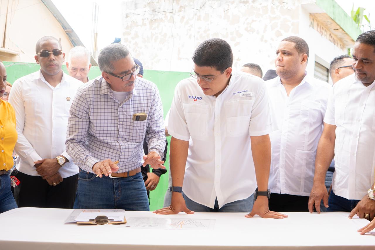 En el sector Sávica, en Los Alcarrizos, inspeccionó los trabajos de un sistema de impulsión (booster) y la instalación de más de 3,300 metros de tuberías, junto con 372 acometidas. La inversión ronda los RD$28 millones y beneficiará a unas 1,860 personas.
