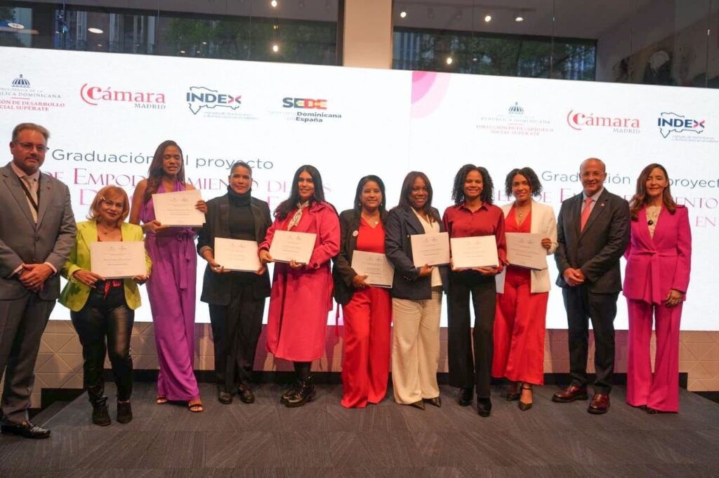 Madrid, España. – 24 de noviembre de 2025.- En el marco de la Semana Dominicana en España (SEDE 2025), celebrada recientemente en la ciudad de Madrid, la Dirección de Desarrollo Social Supérate graduó la primera cohorte de 15 egresadas del programa Mujeres SuperEmprendedoras, quienes gracias a su esfuerzo y dedicación han logrado consolidar iniciativas productivas que contribuyen al desarrollo económico de comunidades y al bienestar de sus familias.