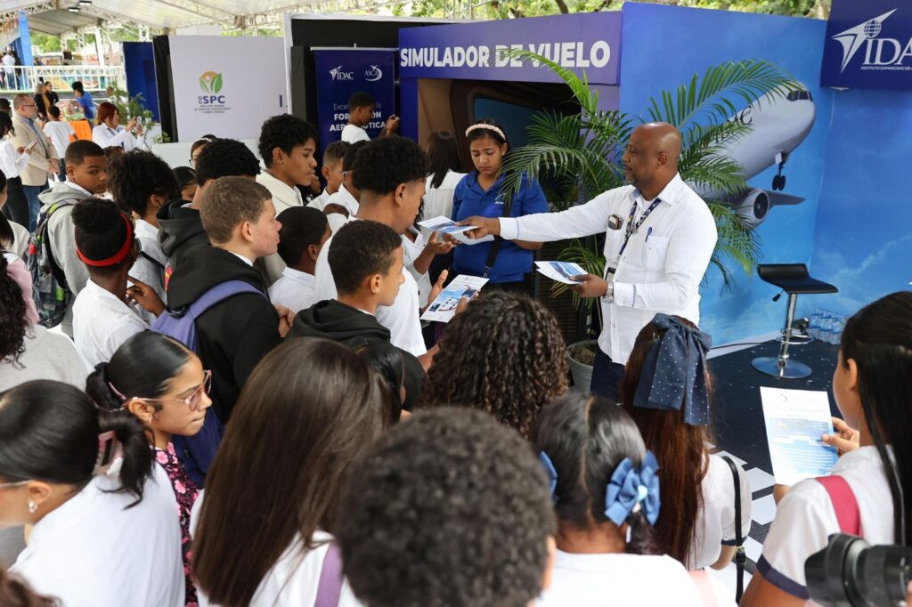 Santiago de los Caballeros.- Más de 10 mil estudiantes se dieron cita en el stand del Instituto Dominicano de Aviación Civil (IDAC) para vivir la experiencia del simulador de vuelo de la Academia Superior de Ciencias Aeronáuticas (ASCA), donde un importante número de participantes mostró interés en conocer más sobre el sector aeronáutico y formar parte de la aviación en el futuro.